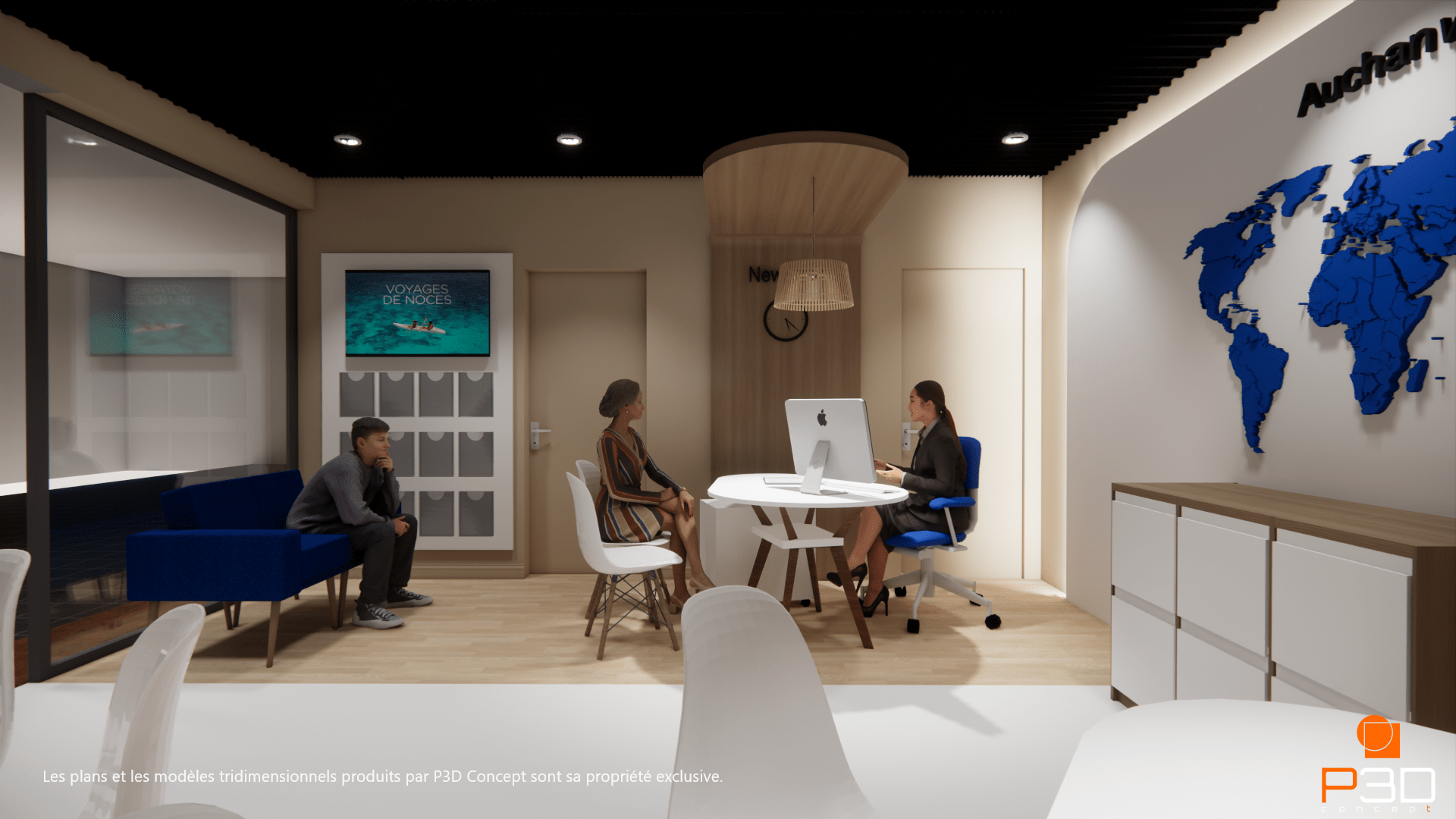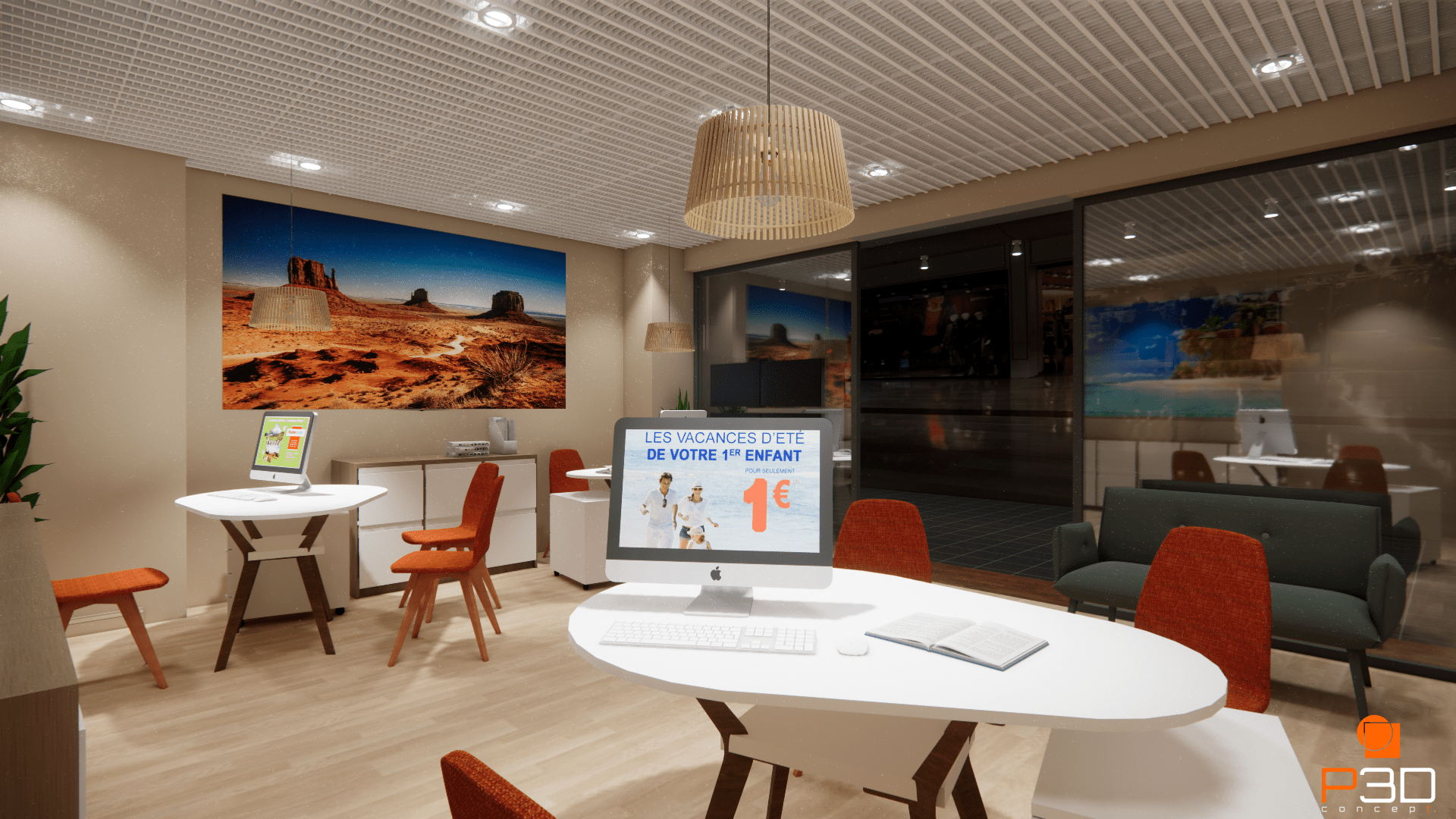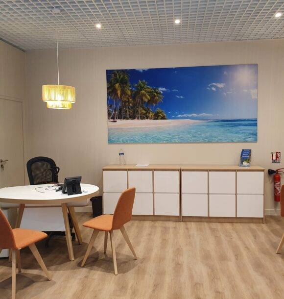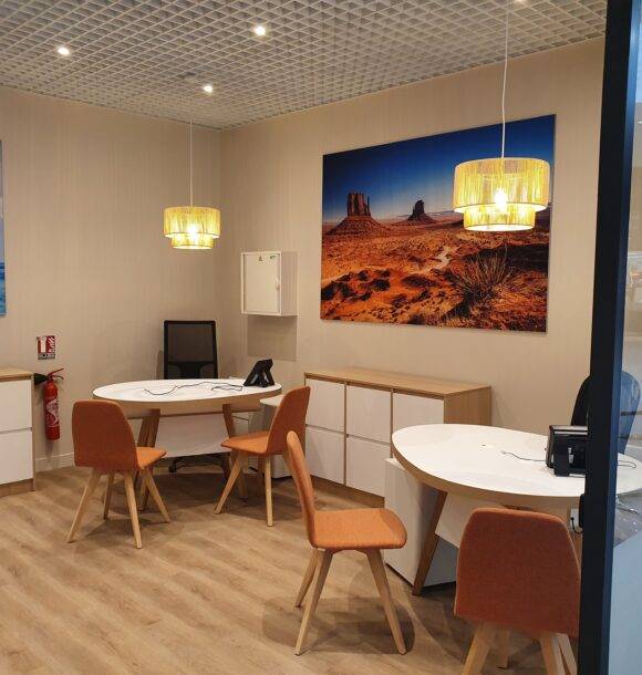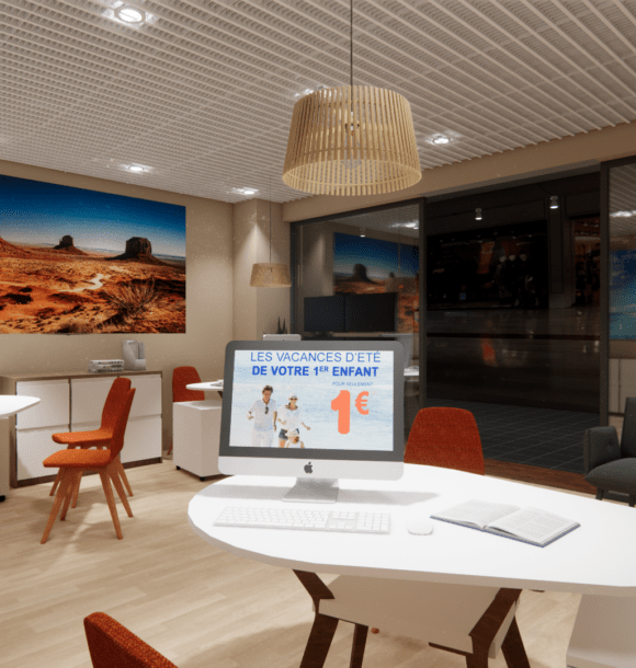 Objectif : Offrir un environnement lumineux et inspirant, pensé pour optimiser l’accueil des clients et mettre en avant la passion du voyage.