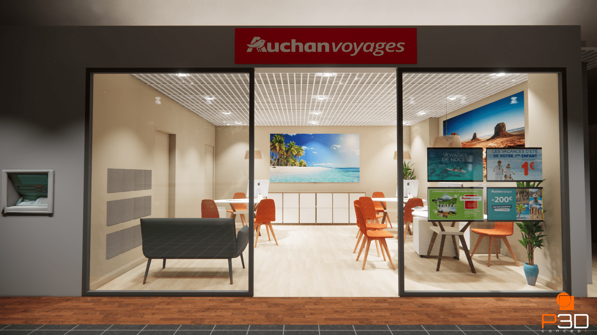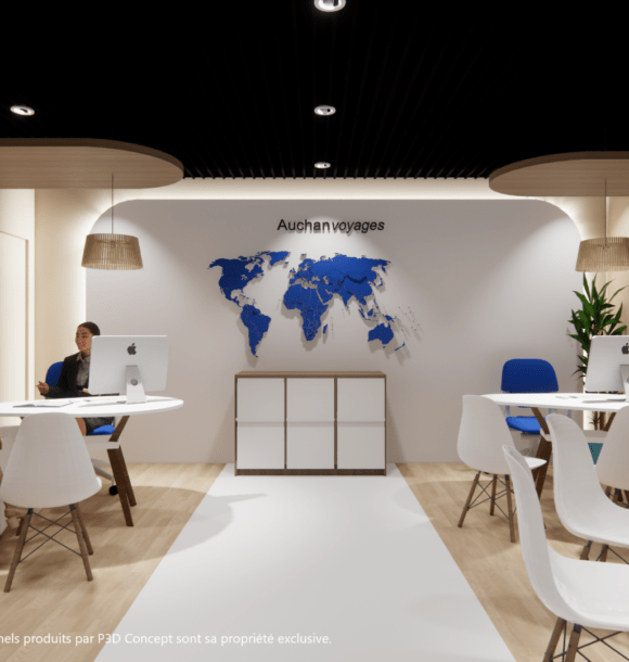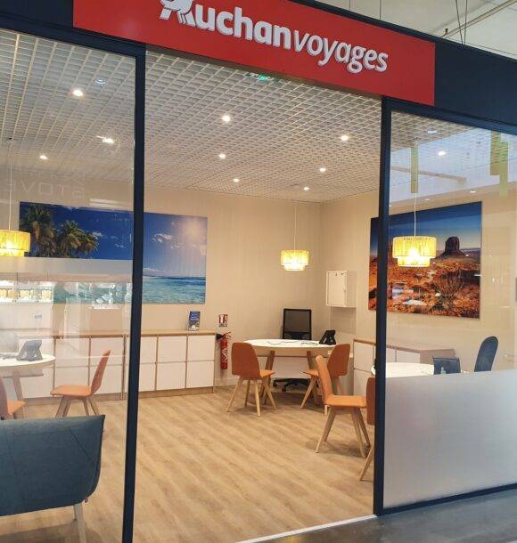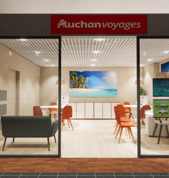 C’est avec enthousiasme que nous vous présentons l’aménagement de la nouvelle agence Auchan Voyages située dans le centre commercial de la ville d’Arras. Ce projet avait pour objectif de repenser un ancien concept afin de créer un espace moderne, fonctionnel et accueillant, à l’image des services de l’agence.